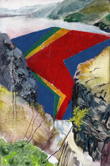 I have only recently discovered Marianne's paintings through Transition, and from what I have seen I really like her work. Small scale paintings, containing these eerie empty architectural figures in rural landscape settings. I like the work in Art Blitz for its juxtaposition of a traditional scenic panorama fused with what looks like a pop art inspired abstract 'weir' it makes me think of early Peter Blake works. I am really enjoying the world which Marianne is creating.